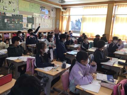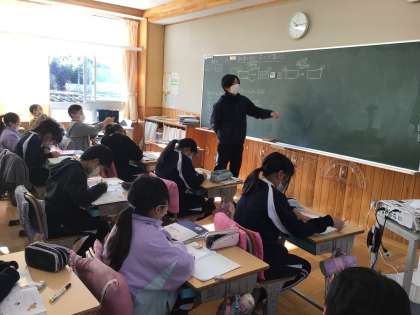 5年生の算数の授業です。割合の文章題について、「もとになる数」「くらべる数」はどれかを確認しながら考えました。