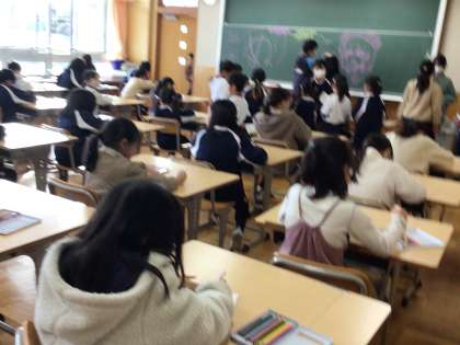 「ぬりえ」「なぞなぞスタンプラリー」の様子です。ぬりえはいろいろな図柄が用意してあり、好きな物を選べます。スタンプラリーは校舎内を広く使い、ポイントに6年生が立って、やってきた子どもたちになぞなぞを出します。