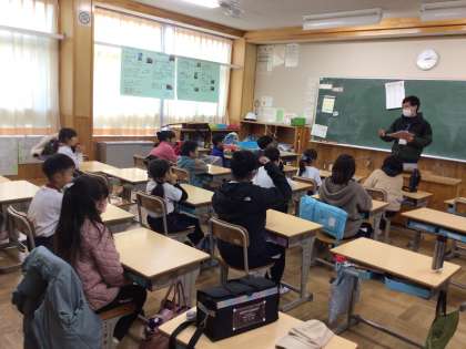 5時間目に、各通学団に分かれて通学団会を行いました。登下校の様子について話し合ったり、約束事の確認等を行いました。