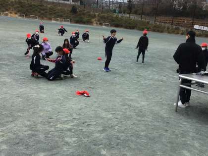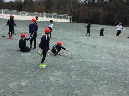 5年生の体育の授業です。なわとび大会に向けて、授業でもなわとびに取り組んでいます。個人技の練習をし、回数を数えていました。