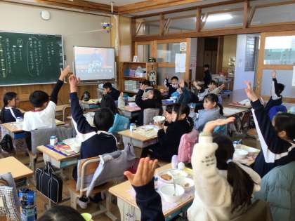 朝は学力テスト等があったため、給食の時間でのお披露目となりました。明日から各クラスを回し、一人ずつ手にとってみます。その後、子どもたちが使えるように、活用の仕方を考えていきます。
