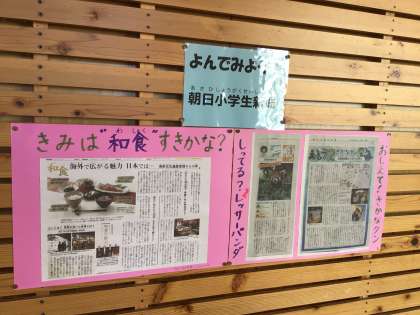 メディアセンター前の掲示板に、朝日小学生新聞が貼られていました。学校図書館司書のおすすめの記事でした。子どもたちが読みやすい内容で、漢字にふりがなもふってあります。