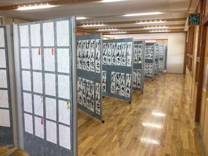 校内書き初め展を開催しています。子どもたちが丁寧に書いた字を見るために、今日も保護者が訪れていました。ありがとうございます。