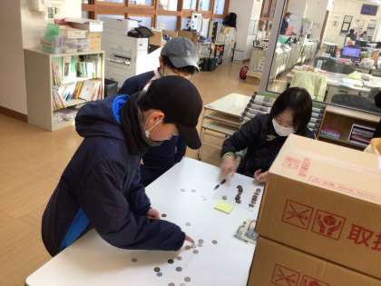 まごころ委員会による「お年玉募金」の様子です。今年は、まごころ委員会で話し合い、「能登半島地震の復興のために役立てよう」と救援先を指定することにしました。放送で毎日の募金額を発表し、募金の呼びかけをしてきました。今日が最終日でした。集まったお年玉募金(85,849円)は、日本赤十字社を通じて能登半島地震の復興に使われます。