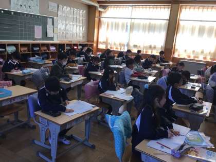 2年生の算数の授業です。かけ算の票を見て、気が付いたことを発表していました。