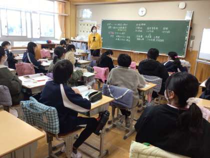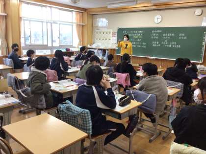 6年生の社会科の授業です。教室の中にある、税金が使われている物を見つけて、発表していました。
