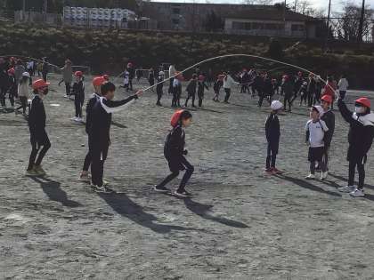 1/23 長なわ練習 公開日 2024/01/23 更新日 2024/01/23 学校の特色ある活動 なわとび大会に向けて、なかよしタイムに練習会を行いました。わくわく班で長なわとびをしました。数を数え、今日の記録を紙に書きました。本番まであと少し。自分たちの記録を伸ばせるようにがんばっています。