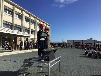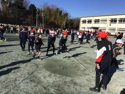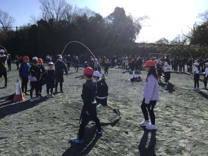 1/27 なわとび大会 公開日 2024/01/30 更新日 2024/01/30 学校行事 青空の広がる穏やかな天気の中、なわとび大会が開催されました。6年生の司会で会を進めました。 第一部はわくわく班(縦割り)での大なわとびでした。今まで練習会を何度も行って、そのたびに数を記録してきました。自分たちの記録を伸ばすことを目標に、励ましあって跳んでいました。 行事
