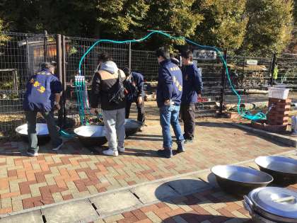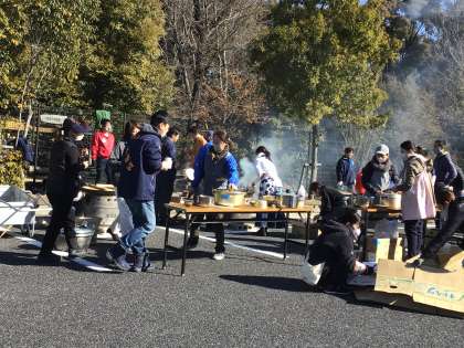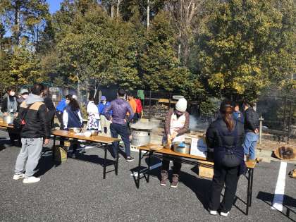 1/27 なわとび大会 その5 公開日 2024/01/30 更新日 2024/01/30 学校行事 なわとび大会の後のお楽しみ、豚汁です。昨日は、材料の買い出しと材料を切り分ける作業に、ボランティアの方々が20人ぐらい来てくださいました。今日は、はそりを出したり、調理をしたり、子どもたちに配ったりする作業に、40〜50人の方が参加してくださいました。地域の青年会や保護者ボランティアの方々です。たくさんの方々が子どもたちのためにしてくださったことに、深く感謝いたします。 行事 地域学校共働本部
