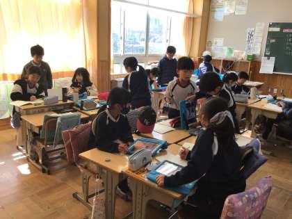 1/30 市の移り変わり 3年生 公開日 2024/01/31 更新日 2024/01/31 各学年から 3年生の社会科の授業です。学習用タブレットの資料から、豊田市の昔の写真を見て、気づいたことを友達と話しながらノートに書いていました。 3年