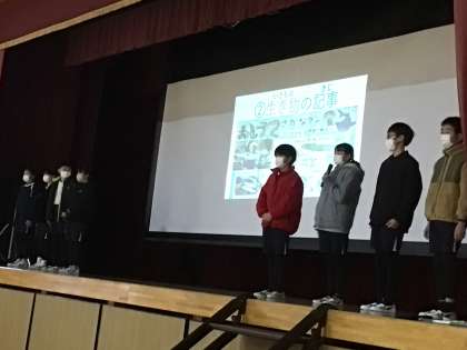 図書委員会からは「朝日小学生新聞の紹介」、企画委員会からは「ノーモア廊下走りキャンペーン」について発表がありました。印象に残る寸劇やパワーポイントを工夫している委員会も多く、子どもたちのアイデアを生かしながら、企画・準備・発表を行っています。集会で行うことで、内容についての周知だけでなく、発表の仕方の勉強にもなっています。