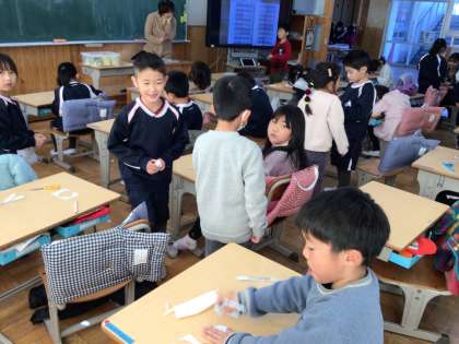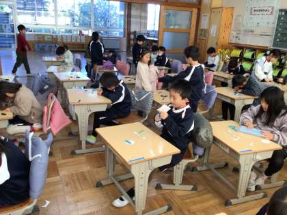 2/8 メダル 1年生 公開日 2024/02/08 更新日 2024/02/08 各学年から 1年生がメダルを作っていました。「送る会」で6年生にあげるメダルだよ、と教えてくれました。慎重に、とても丁寧に字を書いている姿に、1年生のまごころを感じました。6年生、きっと喜んでくれますよ。 1年