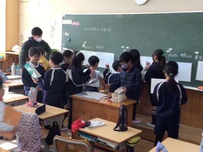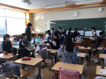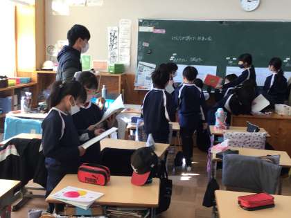 2/9 日本の家 3年生 公開日 2024/02/10 更新日 2024/02/10 各学年から 3年生の国語の授業です。世界の家について書いてある教科書教材で学習したことをもとに、日本の家についても調べる活動をしていました。調べてノートにまとめたことを伝え合っていました。 3年