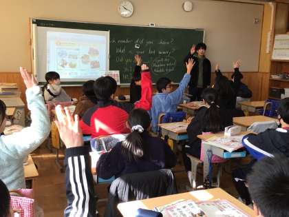 6年生の英語の授業です。思い出に残った行事を聞いたり、答えたりする会話をしていました。動画を見ながら、英語の歌も歌いました。