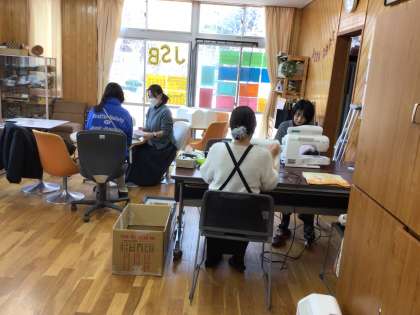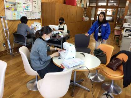 土曜日の共働本部室で、ボランティアとして雑巾を縫ってくださっている方のお姿がありました。まごころ清掃や年度末の清掃に使うため、皆さんが持ってきてくださった古タオルを使って、雑巾にしてくださっています。ありがとうございます。
