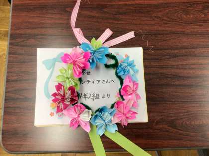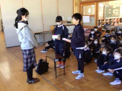 2/13 読み聞かせ感謝の会 公開日 2024/02/15 更新日 2024/02/15 学校の特色ある活動 今年度最後の読み聞かせでした。いつも通り本を読んでいただいた後、子どもたちから感謝の気持ちを伝えました。全校で作った折り紙のリースを贈りました。 読み聞かせボランティアの皆様、1年間、ありがとうございました。今後もよろしくお願いします。 地域学校共働本部