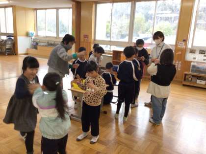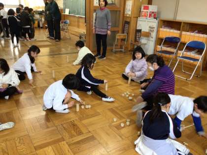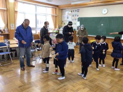 2/15 昔遊び 1年生 公開日 2024/02/15 更新日 2024/02/15 学校の特色ある活動 1年生が生活科の学習として「昔遊びを楽しもうの会」を行いました。浄水町寿会とシニアクラブ向山の皆様が、ボランティアとして参加してくださり、子どもたちに昔の遊びを教えてくださいました。 あやとり、けん玉、おはじき、お手玉、だるま落とし、こま、ヨーヨーの7つの遊びを経験しました。 1年