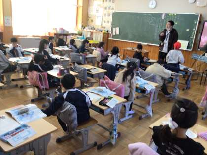 2/26 場面の様子を 1年生 公開日 2024/02/26 更新日 2024/02/26 各学年から 1年生の国語の授業です。「スイミー」のお話の、大きな魚に襲われる場面のところで、小さい魚役の子どもたちのところに、大きな魚役の先生が飛び込んできました。劇風にしてみて、場面の様子を考える助けにしていました。 1年