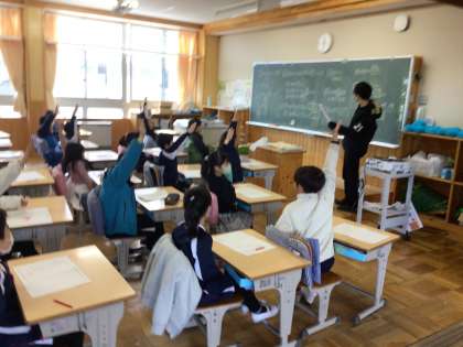 2年生の算数の授業です。算数の月例テストについて、解き方を確認し、間違ったところを直していました。自信満々、よく手が挙がっていました。