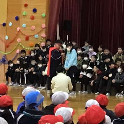 2/29 6年生を送る会 その2 公開日 2024/02/29 更新日 2024/02/29 学校行事 5年生による6年生クイズです。「6年生は、キャンプと修学旅行、どちらが思い出深かったか。」「6年生は、国語と算数どちらが好きな人が多いか。」などの問題を予想しました。また、それに関するインタビューも行いました。 行事