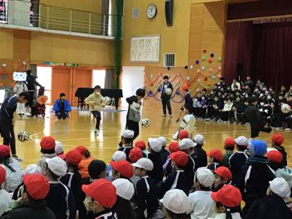 2/29 6年生を送る会 その6 公開日 2024/02/29 更新日 2024/02/29 学校行事 4年生とはリフティング対決です。リフティング自慢同士の対決です。4年生が勝ちました。勝っても負けても大盛り上がり。応援する声が体育館に響きました。 行事