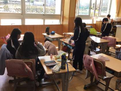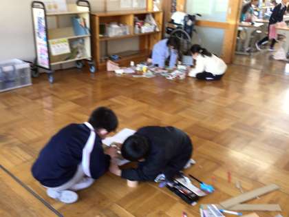 3年生の理科の授業です。理科で今まで学習した、ゴムの力や風、磁石などを使って、グループでおもちゃを考えました。今日は、そのおもちゃを作っていました。