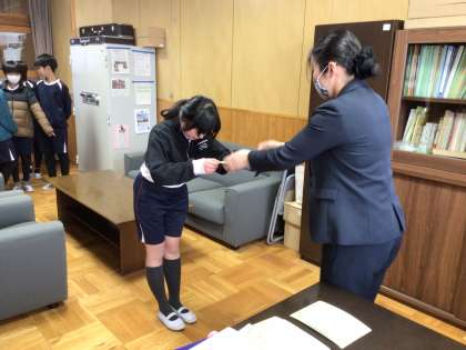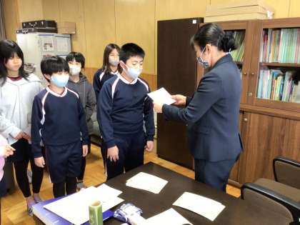 3/15 トゥルーハート賞の表彰 公開日 2024/03/15 更新日 2024/03/15 学校の特色ある活動 子どもたちのよい行いに対し、表彰するトゥルーハート賞です。学年ごとに校長室で表彰を行っています。あいさつや、思いやりのある行動、下学年に優しい、一生懸命に何かをやっていた等、頑張っている子がたくさんいます。
