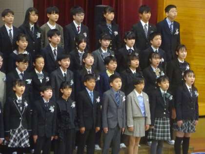 3/19 卒業式 その4 公開日 2024/03/19 更新日 2024/03/19 学校行事 卒業生の「別れの言葉」です。6年間の思い出や、お世話になった方々への感謝の気持ちを込め、声を響かせました。また、合唱曲を2曲、披露しました。 6年 行事