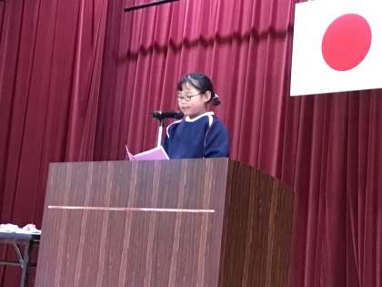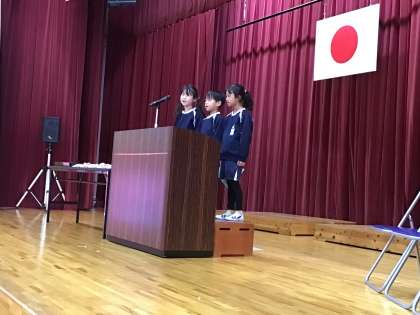 修了式では、代表児童が「この1年でがんばったこと」を発表しました。何かにこつこつ取り組んだり、やり方を工夫したり、目標に向かって努力したりしたことが、発表から分かりました。