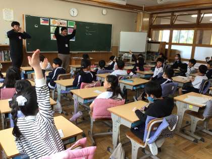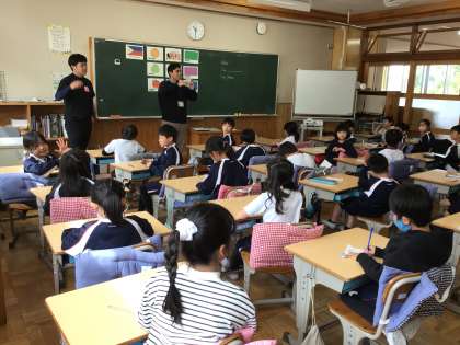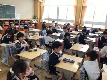 4/11 私の名前は 2年生 公開日 2024/04/11 更新日 2024/04/11 各学年から ALTの先生を迎えての、今年度初めての授業です。「私の名前は〜です。」という英語の言い方を習い、それを使って自己紹介をしあいました。写真は、その活動のあとの振り返りをしているところです。 2年