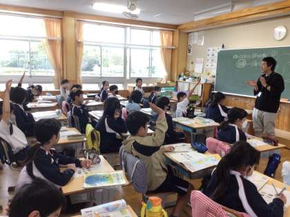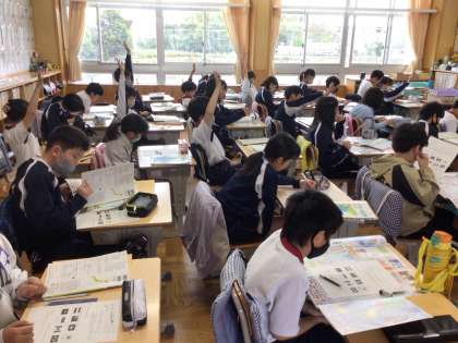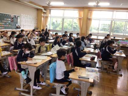 4/16 世界の国 5年生 公開日 2024/04/16 更新日 2024/04/16 各学年から 5年生の社会の授業です。地図帳を使っていろいろな国や国旗について調べていました。調べながらワークシートの問題を解いていき、答え合わせをしていました。 5年