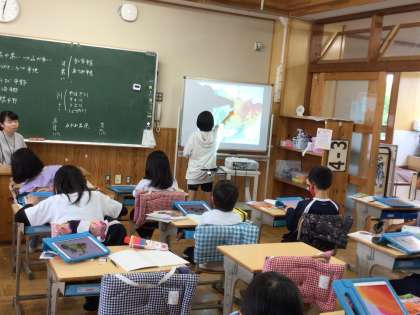 4年生の社会科の授業です。昨年度は豊田市のことを学習した子どもたち。今年度は愛知県について学ぶということを嬉しく思っているようです。愛知県の山や川などを地図を使って探していました。