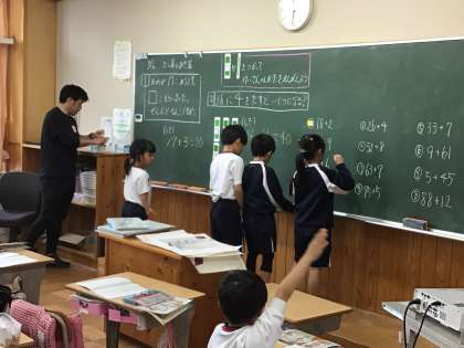 4/16 たし算とひき算 2年生 公開日 2024/04/16 更新日 2024/04/16 各学年から 2年生の算数の授業です。何十何たす何の計算を、数え棒の絵を使って説明したり、練習問題に取り組んだりしていました。 2年