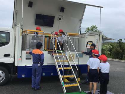 4/30 防サイ君体験 3・4年生 公開日 2024/04/30 更新日 2024/04/30 各学年から 豊田市消防署の防サイ君(起震車)で震度6の揺れを、3・4年生が体験しました。緊急地震速報の音の後、机の下にもぐる指示が流れます。子どもたちは机の脚を持ちながら、頭を守るようにして揺れがおさまるのを待ちます。指示を聞いて、上手にできました。 豊田市消防署の皆様、ありがとうございました。 3年 4年