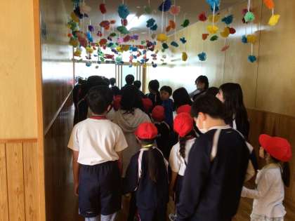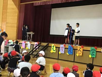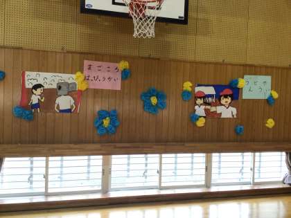 6年生が事前に準備した物の中には、会場の飾りつけもあります。まごころいっぱいの1年生を迎える会をありがとう。そして、これからの縦割り活動も楽しく、みんなで仲良くできるとよいですね。