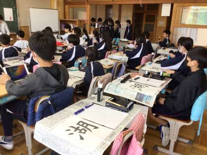 5/10 三つの部分 6年生 公開日 2024/05/10 更新日 2024/05/10 各学年から 6年生の書写の授業です。「湖」という字を書いていました。漢字を構成する三つの部分について、大きさや位置についてのポイントを押さえ、バランスよく書くように意識して書いていました。 6年