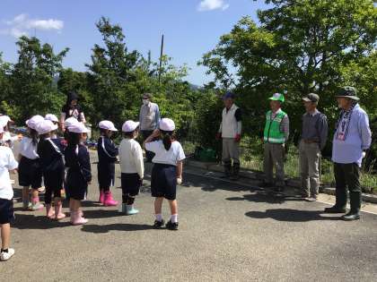 1年生が生活科で、サツマイモの苗を植えました。畑ボランティアの方々に教えてもらいながら、苗を植えました。あいさつ、お礼もしっかり言えました。