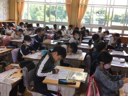 5年生の理科の授業です。種子の発芽の条件を調べるために、どのような実験をしようかを話し合っていました。