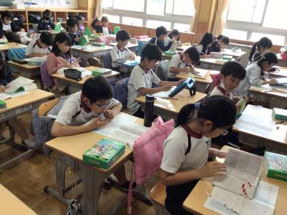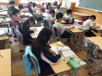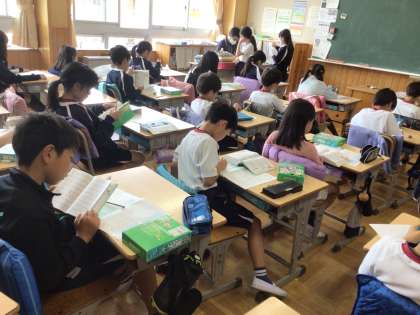 4年生の国語の授業です。漢字辞典で調べる方法を習ったので、その方法でいろいろな感じを調べていました。