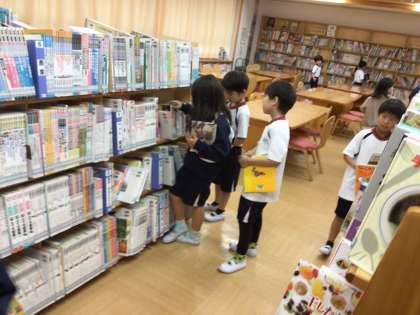5/28 本を借りる 2年生 公開日 2024/05/29 更新日 2024/05/29 各学年から 2年生が、担任の先生と一緒にメディアセンターに来て、本を借りていました。本を借りようと並んでいる子に聞いてみると、「このお話のシリーズが好きだから、これにした。」「家でお手伝いをしてご飯を一緒に作るから、料理の本にした。」「ねこの本。ねこが大好きだから。」と教えてくれました。自分からあまり本を借りない子も、学級そろっていく機会があると、本を借りて読むきっかけになります。 2年