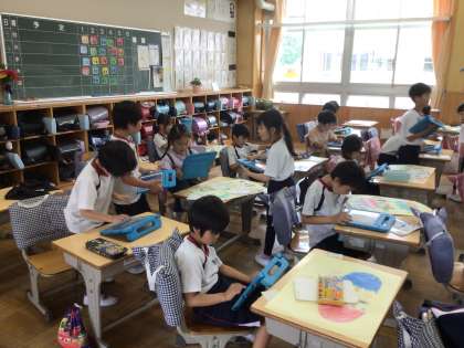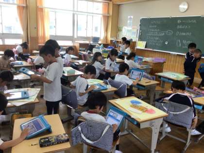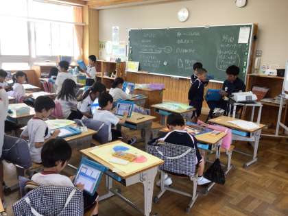 5/31 作品のよいところ 2年生 公開日 2024/05/31 更新日 2024/05/31 各学年から 2年生の図工の授業です。「ふしぎなたまご」という作品を仕上げたので、お互いに作品を見合いました。友達の作品のよいところをタブレットに打ち込み、それを交流しました。 2年