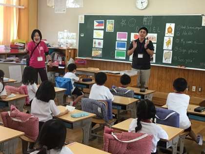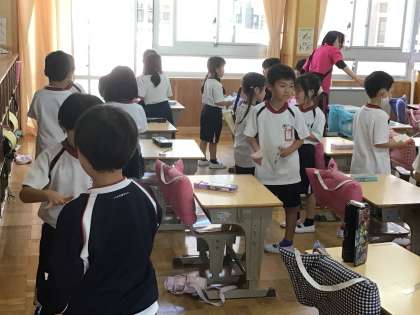 6/3 英語でこんにちは 1年生 公開日 2024/06/03 更新日 2024/06/03 各学年から 1年生が、担任、ALTの先生と一緒に、英語であいさつをしたり、じゃんけんをしたりしていました。それを使って、友達とやりとりをします。英語でじゃんけんをした後は、名前を教えあい、「ここにサインして」と言ってサインを日本語でしあいました。 1年