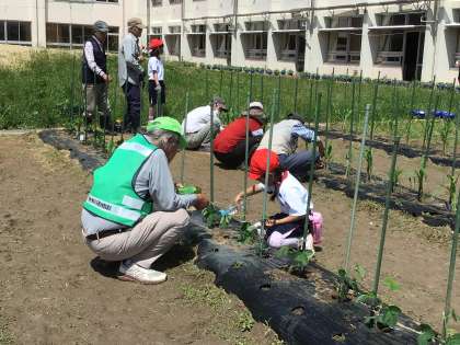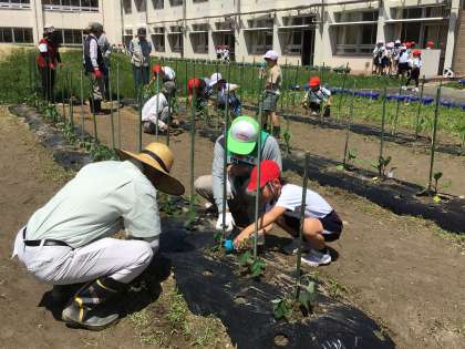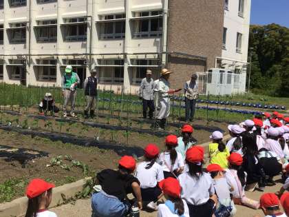 6/4 野菜の苗 2年生 その2 公開日 2024/06/04 更新日 2024/06/04 各学年から 支柱を立て、苗と支柱をひもで結び、水をたっぷりかけました。これから毎日、お世話をして、観察をしていきます。楽しみですね。 畑ボランティアの皆様、今日の活動や前々からの準備、ありがとうございました。 2年 地域学校共働本部