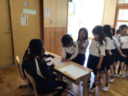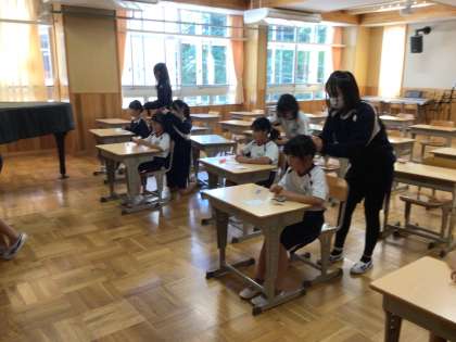 6/5 ヒーローズ 6年生 公開日 2024/06/05 更新日 2024/06/05 学校の特色ある活動 6年生が、「全校のみんなを楽しませたい」という思いで活動をしている「ヒーローズ」です。よりよい活動になるように、前回の反省を踏まえ、各グループがやり方を工夫しています。写真は、ヘアサロンです。受付では整理券を配っていました。好みの髪型を選び、その髪型にしてもらいます。 6年