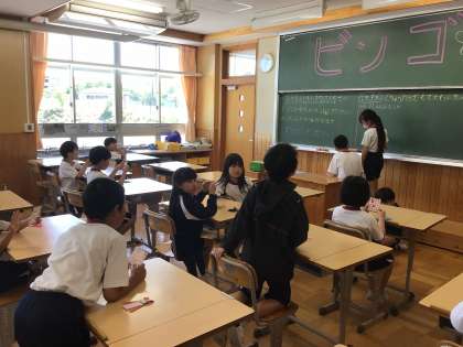 写真は、ヒーローズの「ビンゴ」です。途中で入ってきても、参加できるよう、黒板に番号を書いていました。