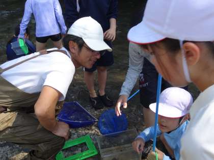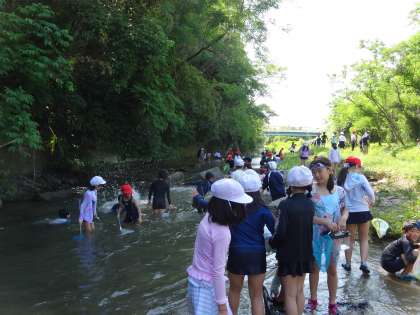 6/5 伊保川へ行こう 4年生 公開日 2024/06/07 更新日 2024/06/07 各学年から 続いて、伊保川に行って生き物を探しました。教えていただいたことをもとに、実践です。生き生きした表情で魚を探し、捕まえようと必死です。「スッポンが取れたよ。」「ヨシノボリがいた。」「ザリガニ捕まえた。」と帰ってきた子どもたちが教えてくれました。 山本様、本日はありがとうございました。 4年