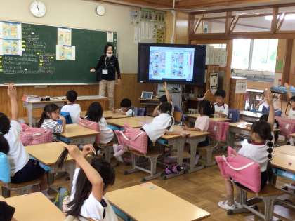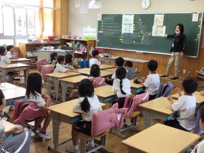 1年生の道徳の授業です。「ふたりのゆうた」という話をもとに、お家の人との約束を守って規則正しい生活をすることについて考えました。子どもたちの発言をたくさん取り上げるために、手を挙げている子が7,8人になったときに、その子たちを立たせて、順番に発言させていました。