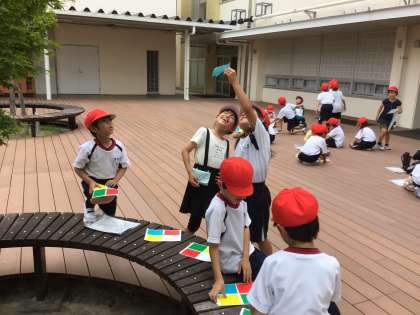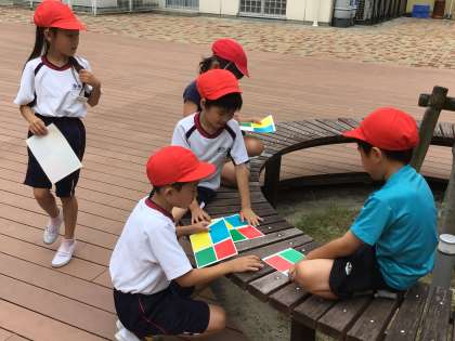 6/7 光のプレゼント 2年生 公開日 2024/06/07 更新日 2024/06/07 各学年から 2年生の図工の授業です。色のセロファンを使って、いろいろな色や楽しい見え方を探していました。セロファンを光にかざして「紫ができたよ。」「緑になった。」と見つけたり、「影がきれいな色になった。」「もっと太陽に照ってほしい。」と話したりして、楽しそうに活動していました。 2年