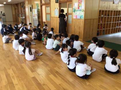 目の検査を待っている1年生や、その他の子どもたちです。静かに待つことができました。