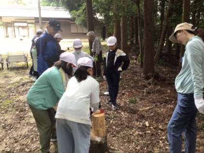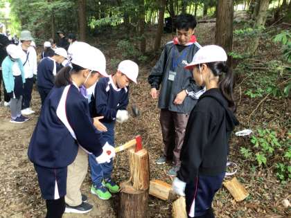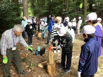 6/13 薪割り体験 5年生 公開日 2024/06/13 更新日 2024/06/13 各学年から 5年生の総合的な学習です。まごころの森の間伐材で薪割りをしました。キャンプに持っていき、炊事に使います。 5年